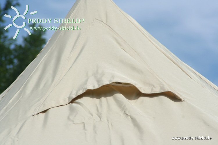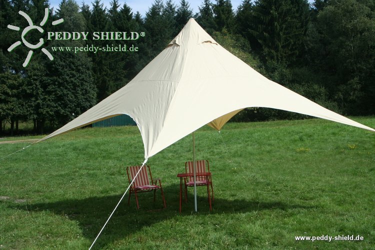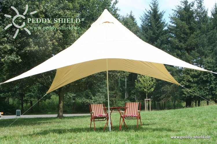 - 4x cuerdas de fibra 3 m, para extender el toldo piramidal – espacio necesario +/- 13x13 m para fijar el toldo piramidal con las cuerdas
